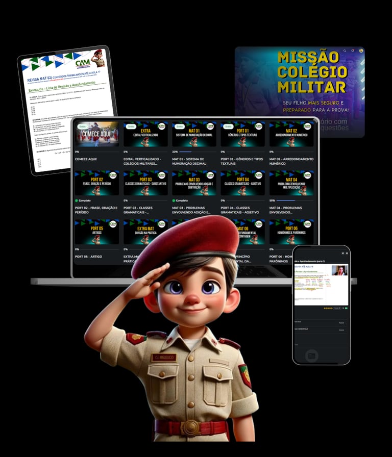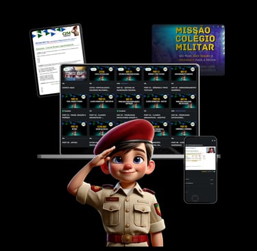 O Missão Colégio Militar é um curso 100% online, com tudo que seu filho precisa para se preparar de forma estratégica por menos de R$35 por mês.