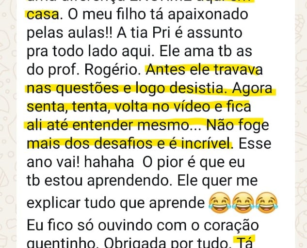 Seu filho terá acesso direto aos professores pela própria plataforma e também pelos nossos canais de suporte, incluindo whatsapp. Sempre que surgir uma dúvida, é só enviar!